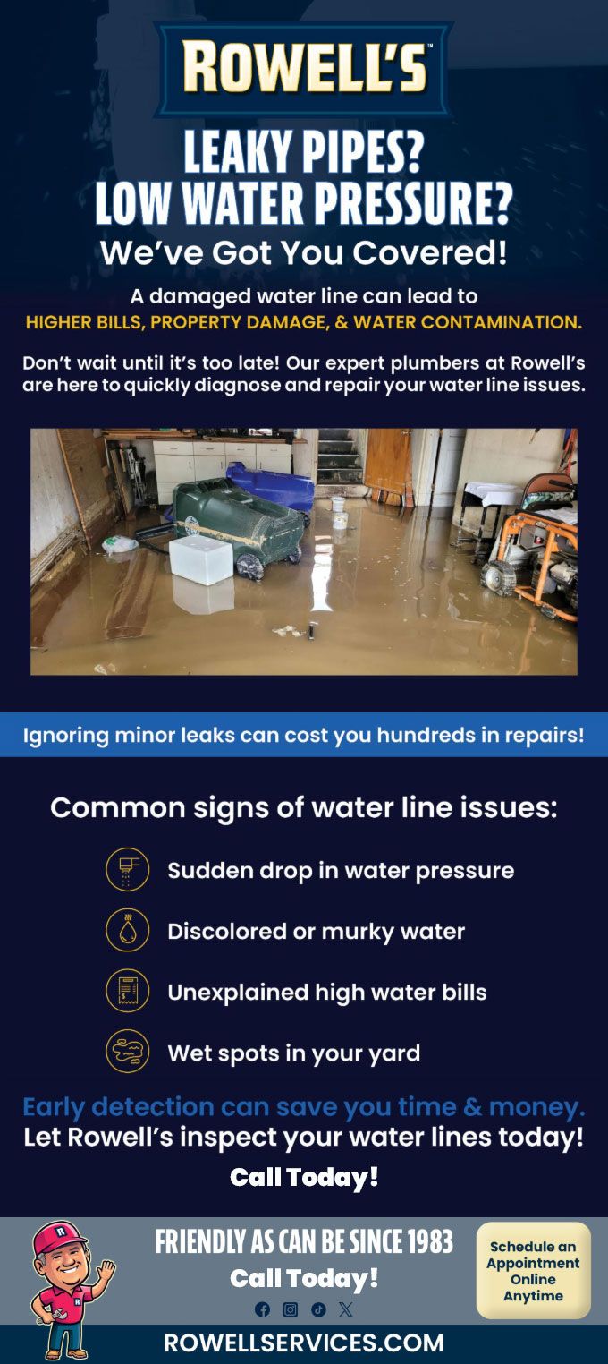 Don't wait until it's too late! Our expert plumbers at Rowell's are here to quickly diagnose and repair your water line issues.
